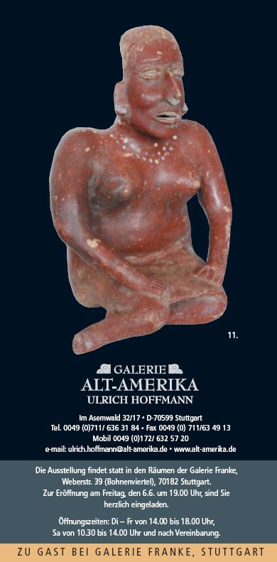 Bitte beachten Sie: Während der Ausstellung "FRAUEN DES ALTEN AMERIKA" ist Herr Hoffmann abweichend von unseren üblichen Zeiten Di - Fr erst ab 14 Uhr in der Galerie.